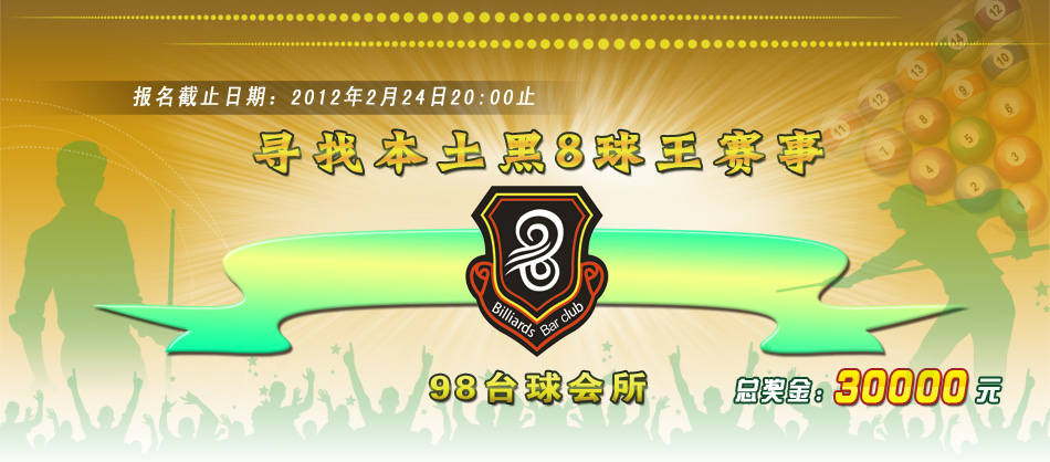 比赛地点:98台球会所(浙江省乐清市宁康西路361号华利大厦7-8层)